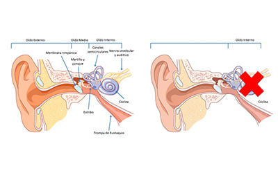 El implante coclear es un dispositivo que reemplaza la función de la cóclea dañada. El implante tiene un componente externo (procesador, transmisor y micrófono) y la parte interna (paquete recibidor-estimulador y electrodos).